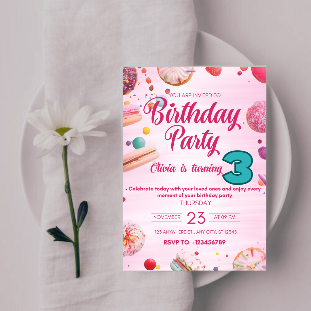 This Editable Canva Template lets you easily personalize every detail—your child’s name, age, party date, venue, and RSVP. No design skills needed! Just edit, download, and share or print.